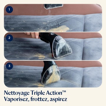 - VERSÁTIL PARA EL HOGAR Y EL COCHE: Gracias a su manguera integrada de 1,5 m, limpia fácilmente rincones difíciles, tapicerías o asientos de coche con el champú para sofás.