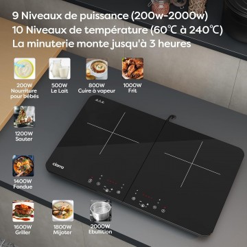 • 9 niveles de potencia: seleccione rápidamente la potencia requerida de 0 W a 3500 W. Además, 10 variaciones de temperatura de 60 ℃ a 240 ℃ para su elección.