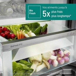 El sistema PowerCooling FreshAir distribuye el aire frío uniformemente por todo el compartimento del refrigerador a la vez que purifica el aire con un filtro de carbón activado , preservando así los sabores. Los dos cajones BioFresh SoftTelescopic mantienen frutas, verduras, carne y productos lácteos en condiciones óptimas, justo por encima de 0 °C. La tapa hermética del compartimento de frutas y verduras aumenta naturalmente los niveles de humedad, mientras que el compartimento DrySafe garantiza la frescura de los alimentos más delicados gracias a la humedad reducida.
