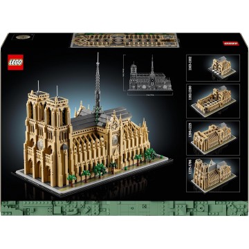 Reviva cada paso de la construcción de un famoso monumento parisino con el set de construcción LEGO Architecture Notre-Dame de Paris (21061) para adultos. Este modelo LEGO para adultos te lleva a un viaje a través de la historia de la construcción del edificio, desde la colocación de la primera piedra en 1163 hasta su majestuosa apariencia antes del incendio de 2019, pasando por las obras de renovación del arquitecto Viollet-le-Duc. ¡Algo para complacer a los amantes del arte y la arquitectura! Recrea detalles auténticos, como la parte trasera curvada, los campanarios, los rosetones y la aguja central rodeada de estatuas, y añade la placa para completar este modelo simbólico de Notre-Dame. Quita el techo de tu creación para admirar las columnas y bóvedas y levanta las torres para contemplar el interior. Este juego de construcción de la Catedral de Notre-Dame para adultos está repleto de detalles históricos que sumergirán a cualquier constructor en una emocionante aventura. Este set de colección LEGO Architecture Landmarks es un regalo LEGO excepcional para adultos creativos apasionados por la historia, la arquitectura, el arte, los viajes o Francia. También es un hermoso recuerdo de París y este conjunto se puede exhibir con orgullo en una sala de estar o en una oficina, una vez finalizada la construcción. Mide más de 33 cm de alto, 22 cm de ancho y 41 cm de profundidad y contiene 4383 piezas.