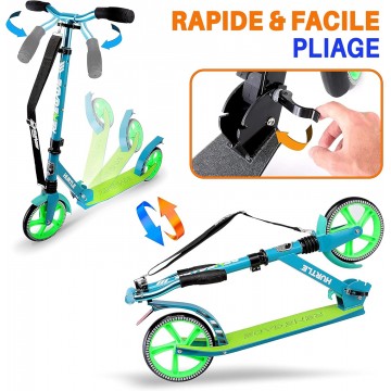 • DESIGN PLIABLE : Cette trottinette adolescent dispose d'un mécanisme de pliage gain de place avec des poignées pliables pour un rangement et un transport faciles. De plus, la trottinette est livrée avec une sangle de transport pour une portabilité pratique.