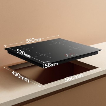 • High Efficiency: Featuring four powerful induction heating zones, this built-in cooktop heats quickly and efficiently, saving you time and energy in the kitchen.