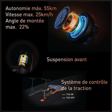 Safety is paramount, and the NINEBOT F2 Pro E powered by Segway scooter offers you peace of mind. It features a front disc brake and a regenerative electronic brake at the rear for even more responsiveness. Plus, with the help of the Traction Control System (TCS), grip is optimized, even on slippery surfaces.