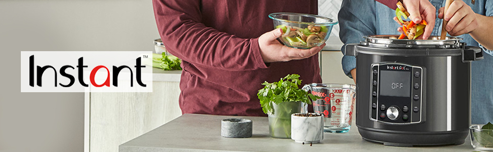 11-in-1 pressure cooker, slow cooker, steamer, sauté pan, food warmer, sous vide, air fryer, rotisserie, mini oven, grill and dehydrator does it all and makes it look easy