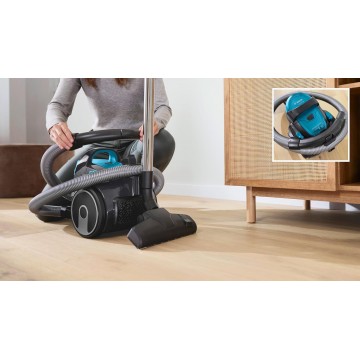 Bosch Household Appliances Series 2, BGS05X240, Compact and lightweight bagless cylinder vacuum cleaner, 9 m operating radius, for all floor types, with special bristle accessory, Turquoise